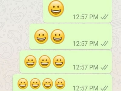 Agora, o envio de um único emoji, o deixa na versão maior. Quando são enviados dois ou três emojis, eles ainda ganham destaque, mas não tanto quanto a primeira opção. Os símbolos voltam ao tamanho tradicional quando formados por a partir de quatro ícones, assim como quando são enviados junto a textos.