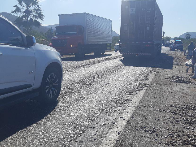 Segundo a Polícia Rodoviária Federal (PRF), após parte da carga de castanhas cair sobre a rodovia federal, agentes do Corpo de Bombeiros fizeram a limpeza da rodovia, que chegou a ser bloqueada e foi liberada cerca de uma hora depois.